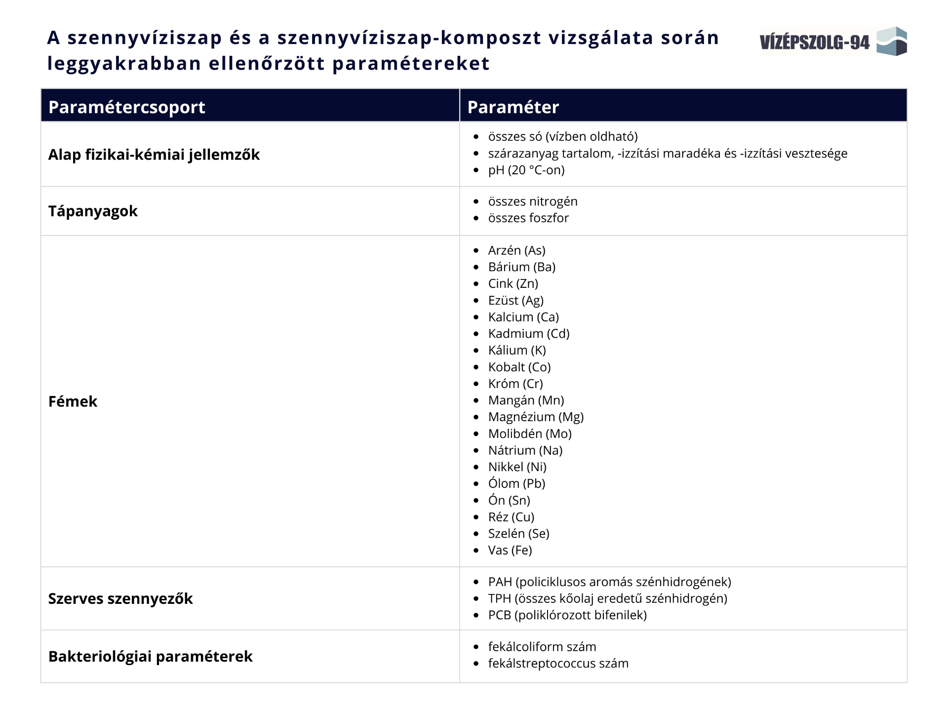 A szennyvíz, szennyvíziszap, szennyvíziszap komposzt mintavételét, valamint az előírt vizsgálatokat csak a mintavételre, illetve a vizsgálatokra akkreditált laboratóriumok végezhetik.